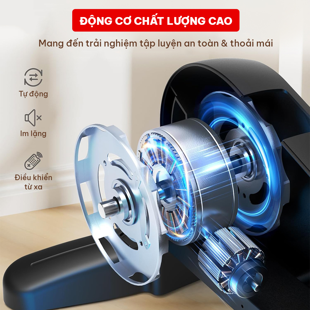 - Động cơ chất lượng cao đem đến trải nghiệm tập luyện an toàn và thoải mái, vận hành êm ái không gây tiếng ồn với âm thanh nhỏ hơn 20db.