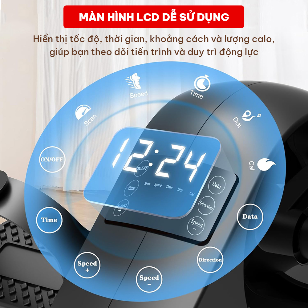 - Có màn hình hiển thị LCD sắc nét theo dõi tiến trình tập luyện của bạn dễ dàng với tích hợp điều khiển các chương trình bật/tắt máy, cài đặt thời gian, đảo chiều quay, lượng calo tiêu thụ,…